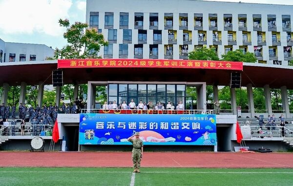 飒爽戎装燃青春,不负韶华砺锋芒。9月20日下午,学院2024级新生军训汇演暨表彰大会在田径场举行。学院党政领导班子成员干武东、王均寅、蔡亦军、汪洋、奚丽萍、董德君、李俊、施莹,中国人民解放军驻杭部队上尉、军训营营长张姚出席大会,相关职能部门负责人、各院系党政负责人,全体带训教官、助理教官、辅导员、新生班主任及受训学生参加。大会由副院长汪洋主持。