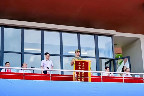 干武东向承训部队赠送锦旗,表达对承训部队的诚挚感谢。