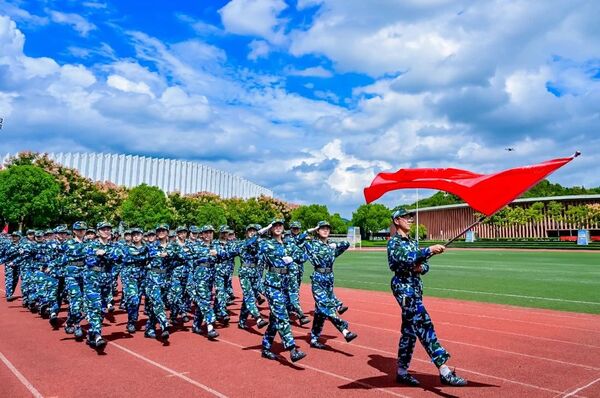 现场还进行了分列式及汇报表演,军歌嘹亮响彻云霄,动作整齐彰显铮铮铁骨,充分展现了浙音学子朝气蓬勃、斗志昂扬的时代新风貌。