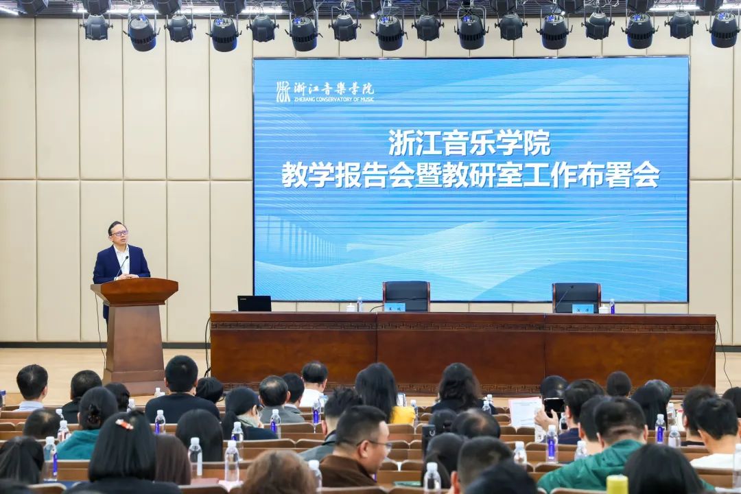 据悉,本次会议是新一届教研室主任换届之后的首次全体大会,是教学管理者统一思想、迭代教育理念的学习大会,也是学校深化教学改革的工作布署会。下一步,学校将进一步落实全国教育大会精神,以服务国家和地方卓越音乐艺术人才需求为导向,不断优化专业设置结构,完善附中与本科一体化人才培养机制;探索建设新形态的基层教学组织,构建大教研室,发挥其人才培养主力军、教学改革主战场、课堂创新主阵地的重要作用;积极打造“全时全域”智慧课程,不断推进数字教材建设;启动以与西湖大学、浙江大学等高水平综合院校双向输送优质特色课程为标志的新一轮课程质量提升工程,开设讲座式课程,提升通识课程建设质量;举办教师发展训练营,科学规划培训内容和形式,增强教师发展中心功效;围绕目标定位、师资力量、课程体系、教材资源、国际化视野、质量保障系统、人才培养成效等要素,加强一流专业的建设力度;开展有组织的教学研究工作;深化五大学院培养机制改革,持续凝练教学成果,推动专业人才培养质量跨上新台阶。
