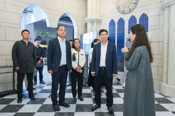 签约仪式前,干武东一行参观考察了M511光影汇8K多功能沉浸探索空间《深空未来》、VR体验项目《永恒的巴黎圣母院》、环境音乐剧《茶无此人》、未来影城以及古建与非遗特展、历史经典产业传承创新主题展等。